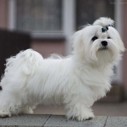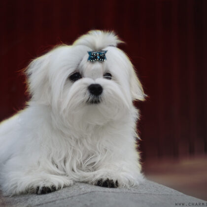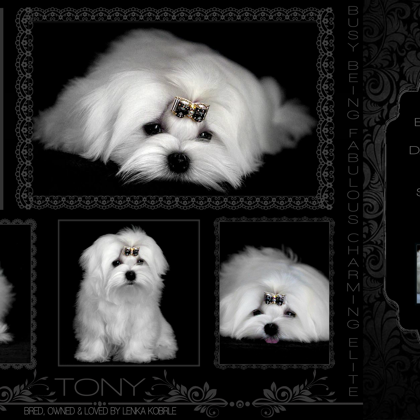Náš první chlapecký odchov, první potomek naší Chloe. Úžasná hlava, perfektní pigment včetně černých drápků, krásné oči, kraťounký nos, pěkné tělo, radost z pohybu, výborná, rychle rostoucí srst, obrovský temperament a naprosto výjimečný rodokmen.... to je Toníček. Za období od jeho 9 měsíců do necelých 13 měsíců na výstavách vyhrál mnoho titulů, poté byl uchovněn a stal se milovaným domácím mazlíčkem (a samozřejmě naším krycím psem :) ).